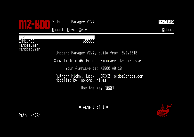 Pokud vybereme soubor s příponou MZF, MZT nebo M12 zobrazí se dotaz Y/N/ESC, jestli chceme skutečně tento soubor spustit. Pokud na dotaz odpovíme ano stiskem klávesy Y, dojde ke spuštění programu.