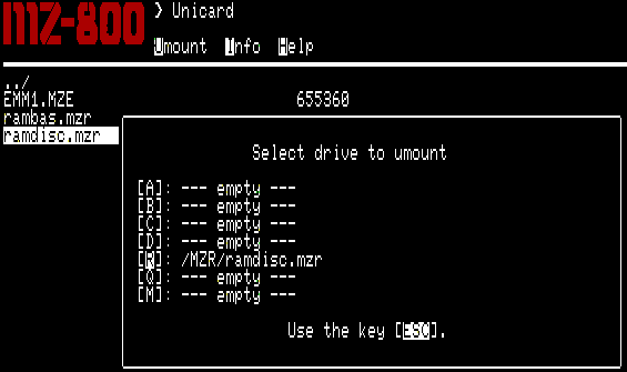 Unicard manager umožňuje snadné odpojení obrazů emulovaných periferií. Stiskem klávesy U vyvoláme nabídku, pomocí které můžeme emulaci libovolné periferie zrušit. Každé periferii odpovídá jedno písmeno. Po stisku odpovídající klávesy Unicard manager odpojí obraz emulované periferie a současně smaže příslušný konfigurační soubor.